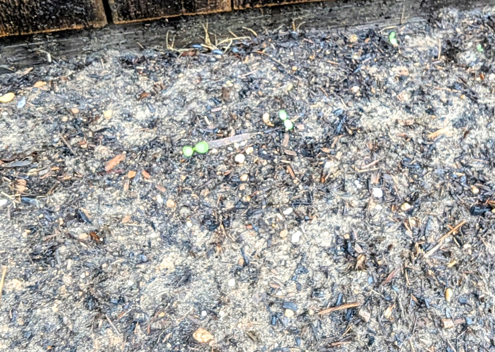 ◱ Small zinnia sprouts emerge.