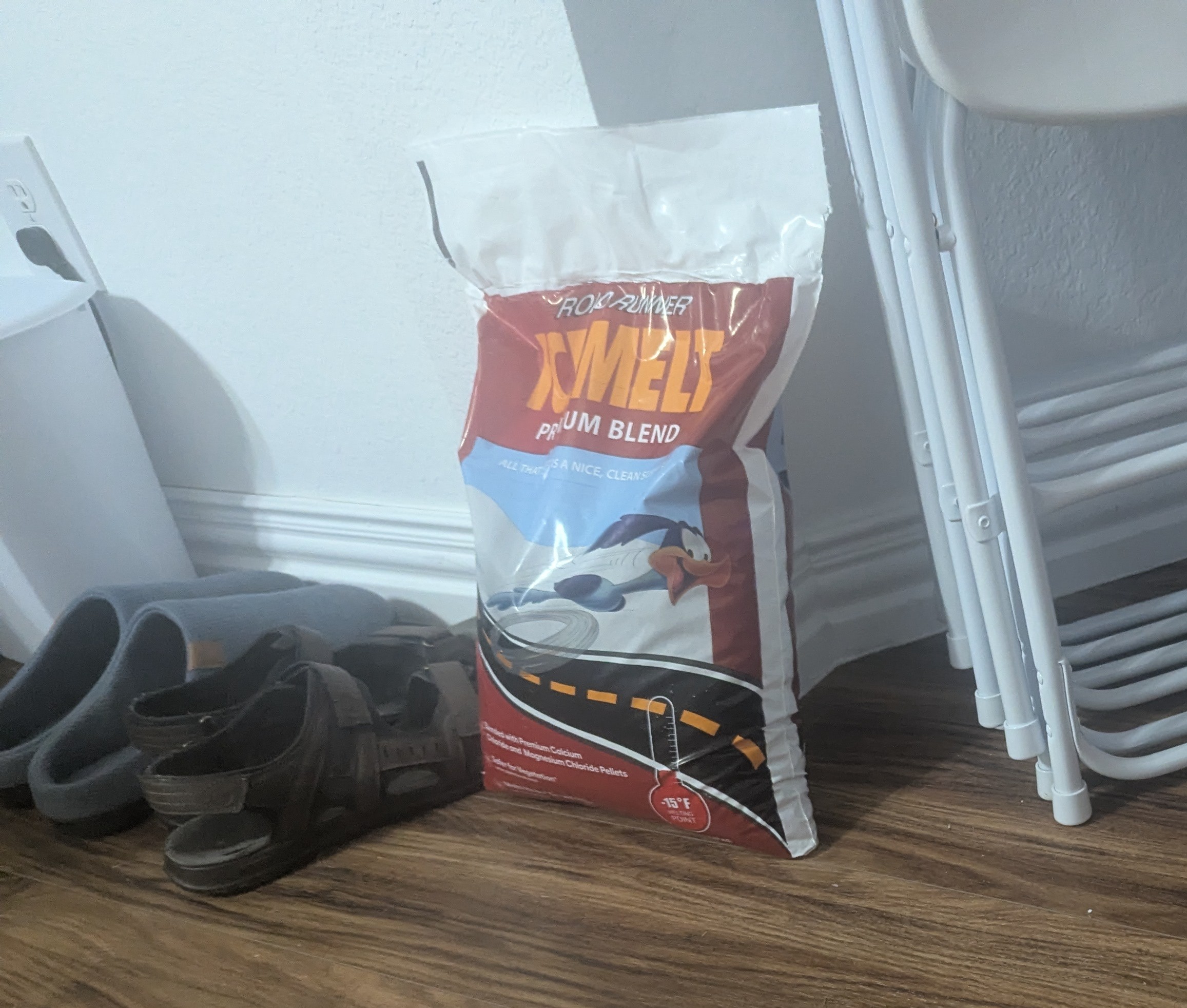 ◱ Don after spreading some Ice Melt (Calcium Chloride)